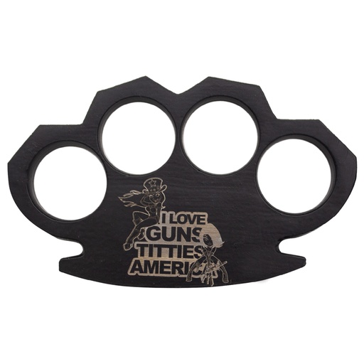 Patriot Anthem Engraved Knuckle Duster Paperweight - Black Steel
