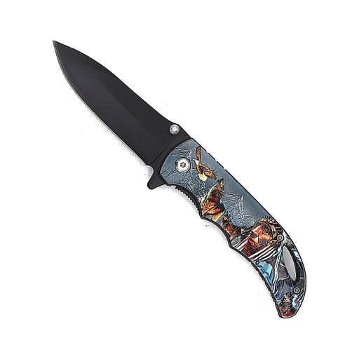 Patriot Skull Quick-Deploy Assisted Opening Knife - Black Blade